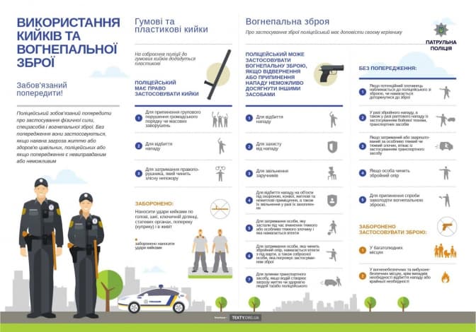 Так, поліцейський зобов’язаний попередити про застосування фізичної сили, спецзасобів і вогнепальної зброї. Без попередження вони застосовуються тільки при явній загрозі життю.