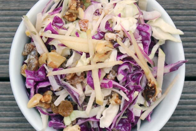 КАПУСТЯНО-ЯБЛУЧНИЙ САЛАТ З ГОРІХАМИ І РОДЗИНКАМИ
