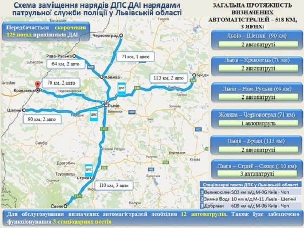 За її словами, відсьогодні на трасах Львівщини працюватимуть патрульні, які досі працювали у патрульній поліції Львова. Поступово буде задіяний резерв та оголошено додатковий набір у патрульну поліцію. За словами Деканоїдзе, на Львівщині 518 км доріг міжнародного значення та три пости, які відсьогодні патрулюватимуть поліцейські.