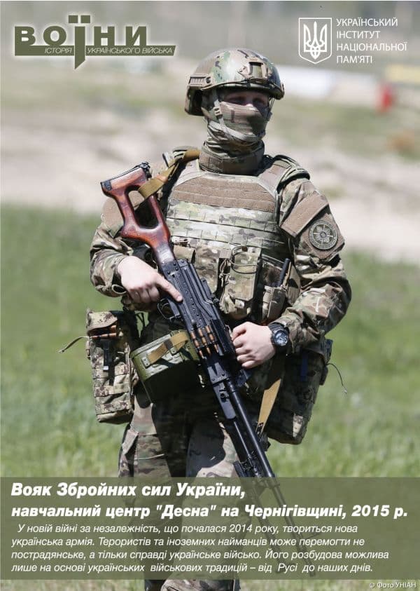 Інститут національної пам’яті передав військовим плакати проекту «Воїни. Історія українського війська». Такий комплект буде у кожній військовій частині України і слугуватиме для промоції серед вояків української військової традиції. У переддень річниці бою під Крутами історики нагадали, російську армію у нинішній війні переможе не пострадянська, а саме українська армія