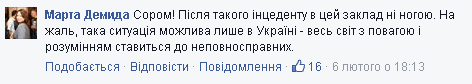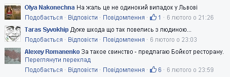 Львів’яни закликають бойкотувати заклад, з якого в п’ятницю, 5 лютого вигнали чоловіка, хворого на ДЦП. Низка мешканців міста висловлюють своє невдоволення у соціальних мережах. Так навіть з’явилась картинка з надписом #БойкотVapianoLviv.