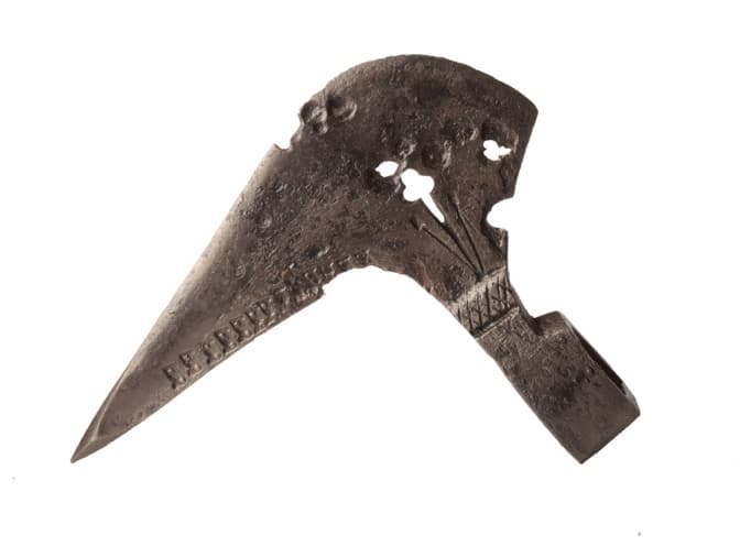 4. З вулиці Шевської походить ще одна знахідка – бойова сокира XVI ст. Фахівці припускають, що за аналогіями вона могла потрапити з Московії. Схожі сокири у той час були на озброєнні їхніх дружинників. Зроблена вона з заліза, з клеймом, і дуже добре збереглась до нашого часу. Раніше, зазначає Остап Лазурко, у Львові знаходили давні сокири, однак не бойові, а ремісничі. Знахідка також є частиною тимчасової експозиції в Археологічному музеї міста Кракова.