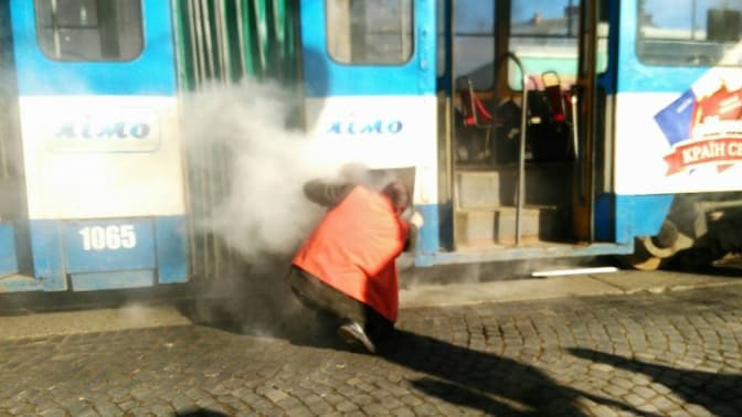 Трамвай №7, який курсував в сторону Пасічної, загорівся. Через це на вул. Личаківський стоять трамваї.