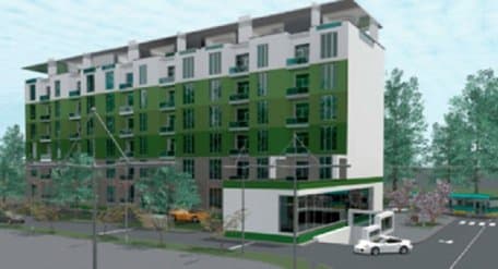 Згідно з планом, у першому будинку будуть 53 двокімнатні квартири площею 66-68 кв. м. На першому поверсі будинку заплановані громадські приміщення. Це можуть бути магазини, кав'ярні тощо.