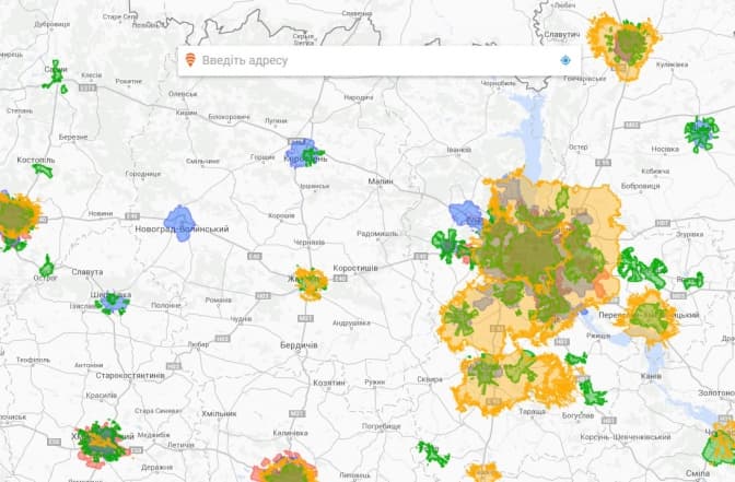 Для навігації по карті можна використовувати поле пошуку (для великих екранів) або геолокацію. Відключити відображення покриття операторів можна в блоці ліворуч. Поточне положення карти зберігається за посиланням, яким можна поділиться з друзями.
