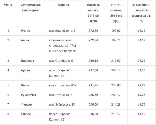 Більш детально про рейтинг львівських супермаркетів за критерієм «кошика чистоти», тобто за базовим набором товарів для гігієни та побутової хімії, можна прочитати на сайті «На закупи»