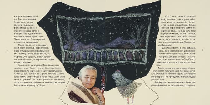 «Це вперше в моїх книжках з’явилися люди. Це стало головним викликом. І моєю невдачею. Після багатьох спроб намалювати людські обличчя я побачила, що не можу намалювати так, як хочу. Так з’явилась ідея колажу. Я придумала знайти реальних людей, які би зіграли ролі персонажів книжки, і фотографа, який би їх сфотографував. Ця книжка перетворювалася на фільм і наша з Софією комунікація розширилася до більшої кількості людей. Я відчула себе трохи режисером і вирушила в Криворівню на пошуки бабусі – нашої головної героїні. Її я вибрала на службі в церкві серед кількох десятків інших бабусь, просто відчула, що це вона, підійшла до неї, розказала про нашу ідею і вона відразу погодилася. Її звати Василина Зеленчук і я вважаю, що вона найпрекрасніша бабуся з усіх можливих бабусь, які б могли зіграти роль старої Марії. Орисю зіграла донька моєї подруги Устина Шкутяк, яка зачарувала нас усіх своїм неповторним шармом і безпосередністю. Коли ми знайшли двох головних героїнь і фотографа Олену Субач, то вирушили у нашу головну гірську експедицію – власне на зйомки. І вже там, на місці, у процесі роботи зрозуміли, що тут живуть і наші герої другого плану: чоловіки Кулінський та Зелінський і тато Орисі. Кулінського і Зелінського ми також вибрали на службі в церкві, а тата Орисі люб’язно погодився зіграти місцевий священник отець Іван Рибарук. Все відбувалося доволі спонтанно і легко. Життя саме давало нам подарунки, а ми тільки встигали ними користатися», – розповіла Мар’яна Прохасько.