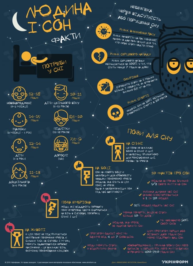 У якій позі засинати найкраще: 10 цікавих фактів про сон. Інфографіка