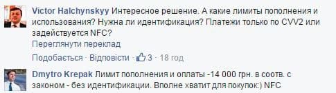 Як повідомив менеджер компанії на своїй сторінці у Facebook, ліміт поповнення та оплати для такої картки становить 14 000 грн, згідно з законом, без ідентифікації.