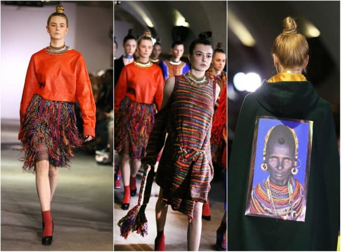 Показ колекції польського дизайнера Клавдії Маркевіч (Klaudia Markiewicz) «Back To The Roots» осінь/зима 2016/17 з африканськими етнічними елементами. Колорит інспірований племінними костюмами масаї і догонів, проте дизайнер працює з сучасними, європейськими формами. Важливим є використання ручної роботи – в'язання, в'язання гачком, ткання на традиційних кроснах. Також використовуються місцеві матеріали – в основному польська вовна, яка є даниною польській традиції, історії і польському модному промислу XIX ст.
