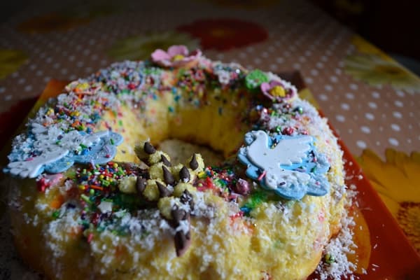 Складники: 7 скл. борошна в/г, 70 г. дріжджів пресованих, 1 ч. л. солі, 2 скл. молока, 8-10 яєць, 250 г цукру, 250 г. масла, 1 пакетик ванільного цукру, 50 г коньяку, цедра лимона і апельсина.