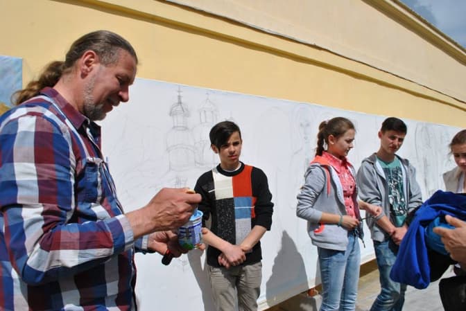 Розпис стін Святоюрської площі відбувається в рамках Міжнародного форуму мистецької творчості «Золотий мольберт слідами Мойсея українського Духа»