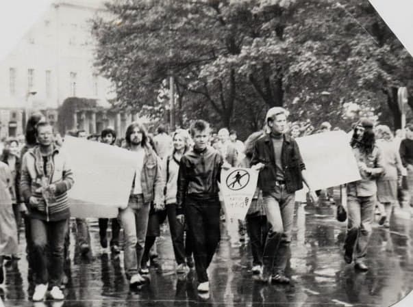 Представники львіських хіппі під час демонстрації. Фото 1970-1980 рр.