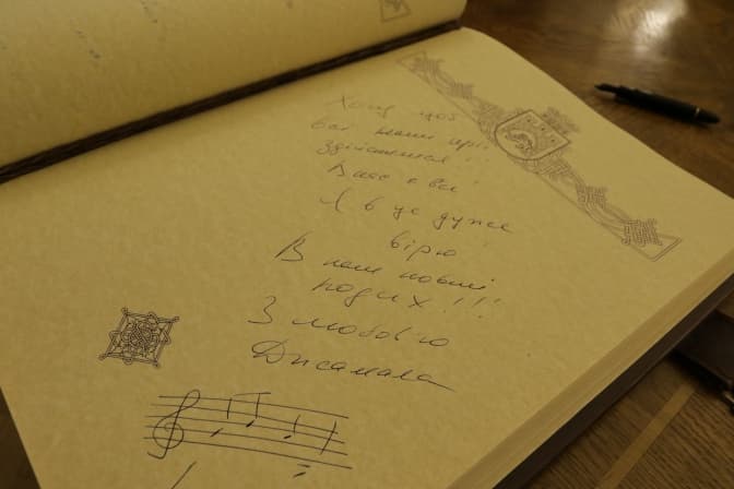 «Хочу, щоб всі наші мрії здійснились. У нас є все. Я в це дуже вірю. В наш новий подих. З любов’ю, Джамала», - написала співачка у Книзі.