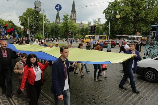 Відтак біля пам’ятника Степану Бандері провели громадське віче. Опісля учасники сформували колону і пройшли вулицями Львова до проспекту Свободи. Там представники влади та громадськості поклали квіти до пам’ятника Тарасові Шевченку та виконали Національний Гімн України.