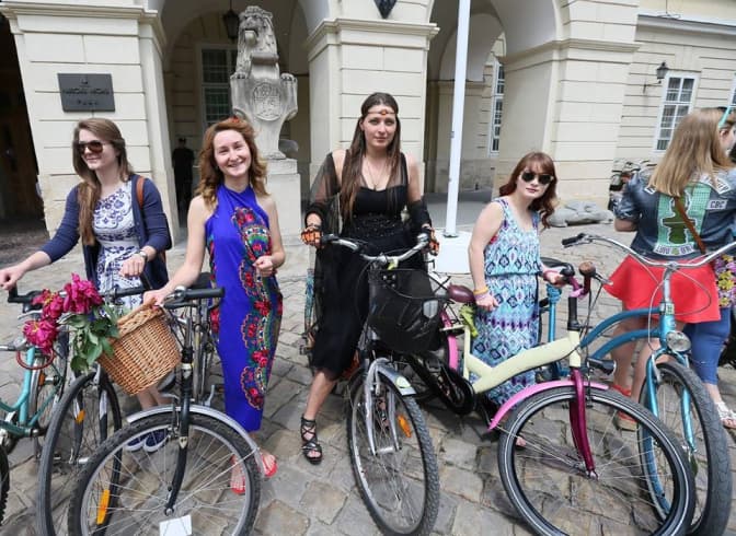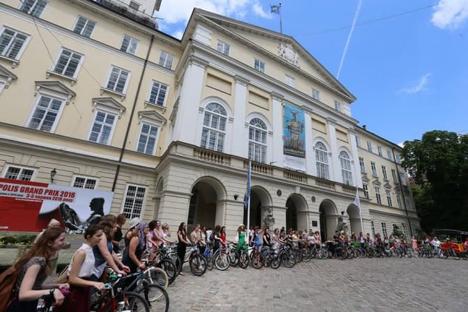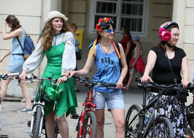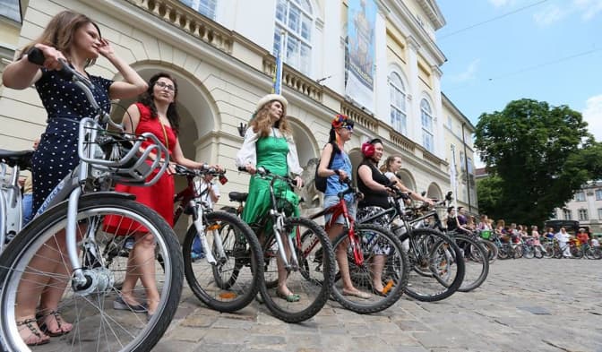 Сьогодні, 4 червня, у Львові пройшов жіночий велопарад під гаслом «Богиня на велосипеді». Пропонуємо 10 фото з події.