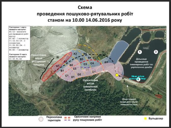 «З 08.00 год. проводяться пошукові роботи зниклого еколога, задіяно 2 екскаватори та 4 осіб від ДСНС. Пересипано сміття орієнтовно 360 м. куб. З метою недопущення виникнення горіння сміття на дальньому схилі, силами ЛКП «Збиранка» (14 осіб та 4 бульдозери, 3 екскаватори, 6 самоскидів) проводяться роботи по засипанню схилу ґрунтом, завезено 240 м. куб глини і сплановано територію на площі 160 м. кв.», – йдеться у повідомленні.
