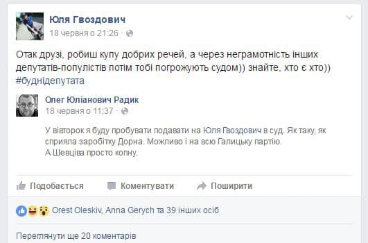 «Ми будемо позиватися на Юлію Гвоздович, тому що трактувати ухвалу міської ради ніхто не має права – її треба виконувати. Депутатка перебрала на себе ці повноваження. Львів розташовується на території Львівської області, а Львівська обласна рада прийняла аналогічне рішення. Юлія Гвоздович у Фейсбуку намагалася з’ясувати думку громадськості, хоча мала б просто виконати ухвалу. Тим паче, що вона не голосувала за цю ухвалу, пояснюючи це тим, не встигла. Наразі ми готуємо позов, подивимося на реакцію суддів», – розповів Олег Радик.