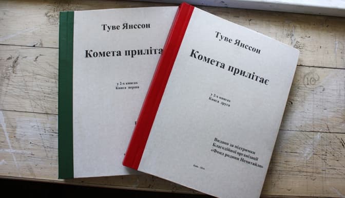 Благодійна організація «Фонд родини Нечитайло» у партнерстві з Львівським осередком громадської організації «Українська спілка інвалідів – УСІ» та «Видавництвом Старого Лева» видала повість Туве Янссон «Комета прилітає» шрифтом Брайля у двох томах.