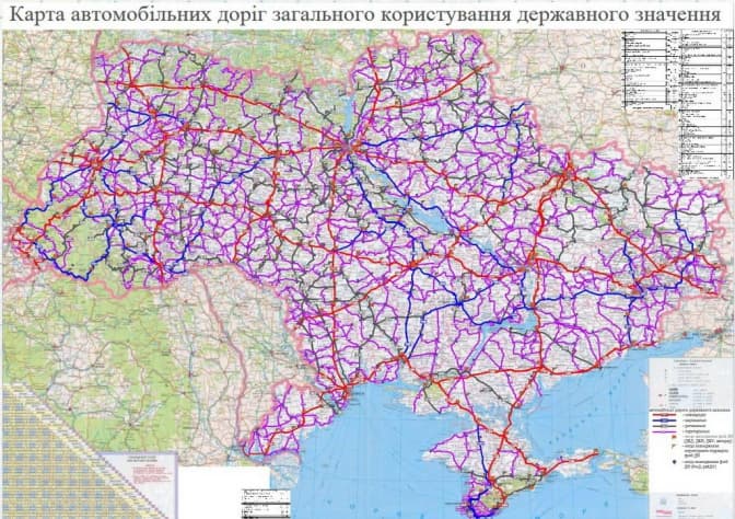 На мапі, розробленій «Укравтодором», зображено всі автомобільні дороги загального користування державного значення, котрими можуть пересуватися вантажівки вагою до 40 тонн, а саме: