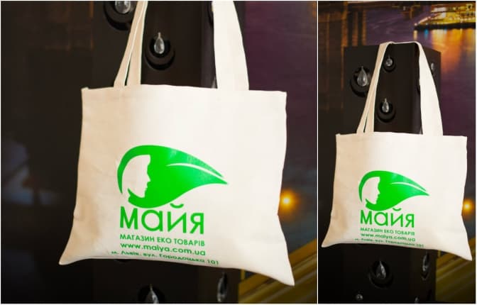 Пропонують великий вибір еко-пакетів, а також можливість зробити свій власний варіант торбинки.