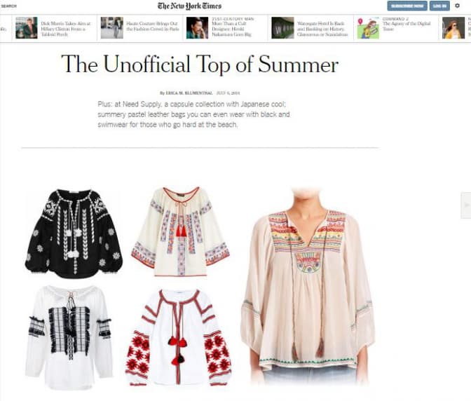 У статті розповідається про лейбл March 11, який створили у створили українці, що живуть у Нью-Йорку, Світлана Головченко і Роберт Міщенко. Вони у своїх колекціях пропагують традиційну українську вишиванку, – інформує hromadske.ua.