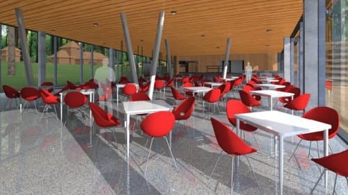 Третя зона – кафе на 80 осіб. У зоні швидкого харчування облаштують кафе, де можна швидко перекусити. «Ми орієнтувалися також на групи людей, які приїжджають до нас на екскурсію з інших міст. Ми хотіли створити умови, аби вони могли швидко перекусити. До цієї зони ще додамо два літні майданчики: один із них – на даху, інший – перед входом (щоб можна будо скористатися послугами кафе навіть тоді, коли сам Музей не працює). Адже поруч розташовується парк «Знесіння», де на понад 150 га немає туалетів і жодної комунікації», – каже Роман Назаровець.