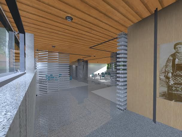 Перша зона – інформаційна. Вона передбачає скляну кімнату, де розташовуватиметься інформаційний пункт, м’які дивани для відвідувачів тощо. Це буде місце, де можна отримати вхідний квиток та всю необхідну інформацію про Музей.