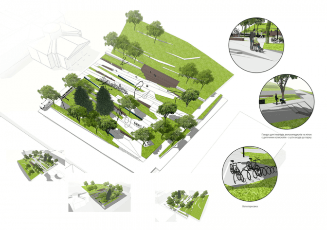 Також передбачена велопарковка, водні арт-об’єкти та інше.