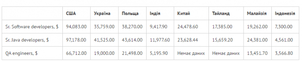 Хороша освіта залишає свій відбиток на рівні зарплат: українські айтішники заробляють в чотири рази більше своїх колег з Індії та в два рази більше фахівців ІТ-сфери з Китаю. Окрім того, за рівнем зарплат українці майже наздогнали колег з Польщі.