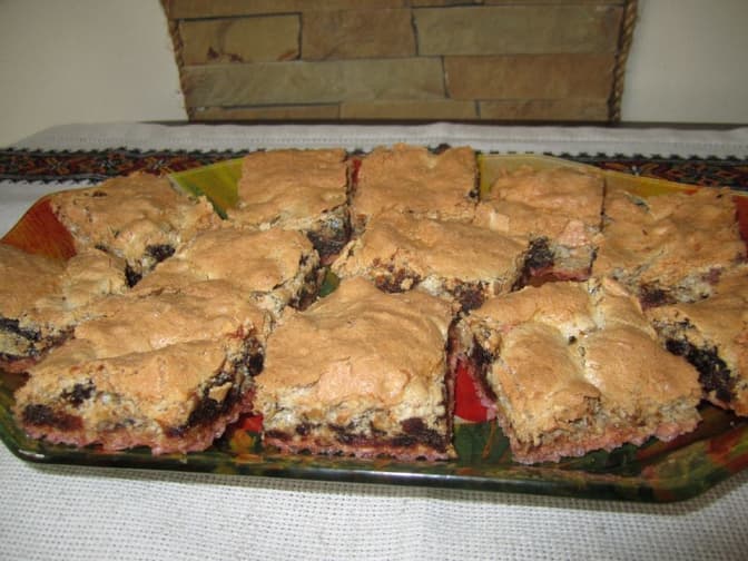 Склад:1 ½ горнятка борошна (муки), ½ горнятка меду, ½ горнятка олії, 3 яйця, ½ горнятка цукру, ½ ложечки порошку до печення, тертої шкірки з цитрини.