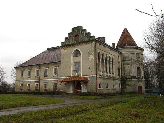 Споруду прикрашають незвичні колони із арковими перегородками, башта та елементи готики на правому фасаді. У період війни палац постраждав, проте згодом його реставрували і зробили навчальним закладом.