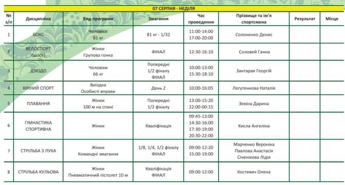 Олімпіада в Ріо: український розклад другого дня змагань