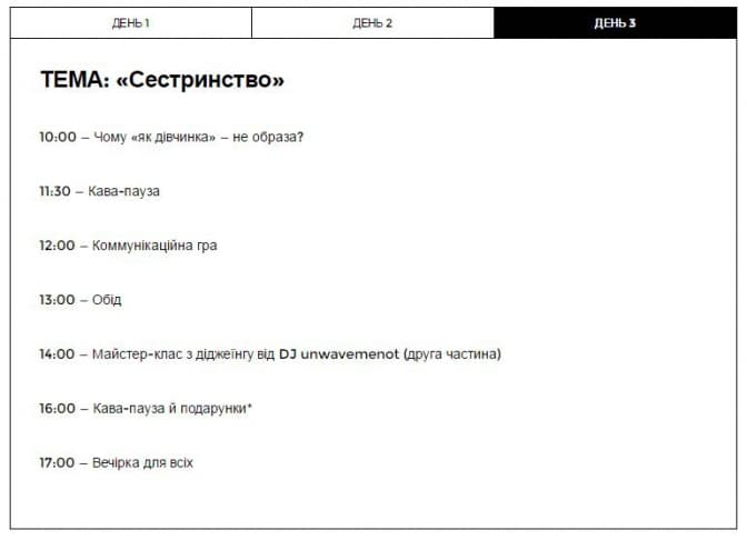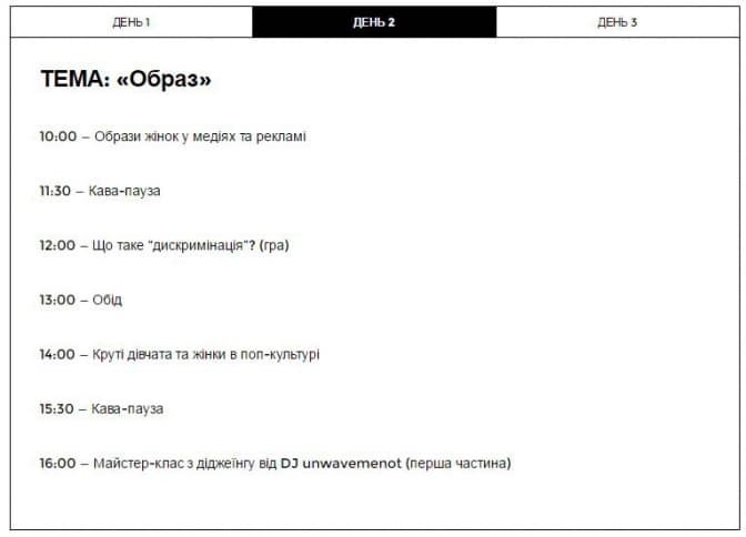 «Вирішили провести табір для дівчат-підлітків, під час якого поговоримо про сексуальну освіту, якої бракує в школах. Батьки часто соромляться обговорювати це зі своїми доньками. Також розкажемо про образ жінки в медіа, як наш інформаційний простір формує ставлення до жінок та впливає на нас самих. Розмовлятимемо й про те, як можна подолати різні негативні явища. Окрім того, будемо розважатися. Адже літом важливо не лише отримувати знання, а й гарно проводити час», – розповіла у коментарі Tvoemisto.tv активістка «Феміністичної майстерні» Софія Сас.