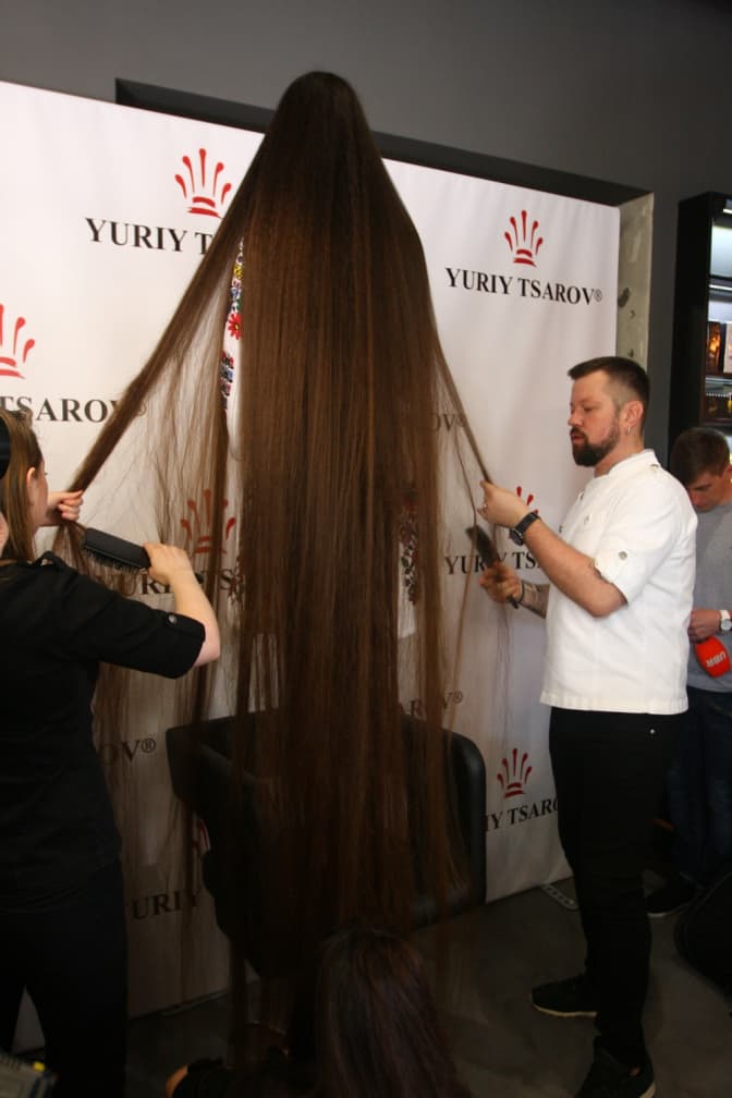 Щоб заміряти довжину волосся, експерти попросили Христину стати на стілець. Волосся повністю закривало спину дівчини і спадало на підлогу. "Волосся мию раз на тиждень. Шампунь наношу лише на голову, самі коси мию у мильній воді. Після цього змотую рушником і даю трохи підсохнути. Розчісуватися допомагає мама, бо сама впоратися не можу. Щітками і гребінцями не користуємося. Волосся розбираємо пальцями на волосинки і викладаємо на прасувальну дошку. На це йде три години", – поділилася Христина Кречківська.