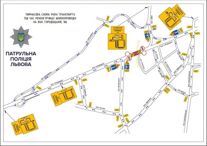 Де саме перекрили: від вул. Пластової до вул. Золочівської