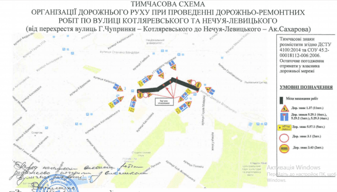 Де саме перекрили: вул. Котляревського (від вул. Чупринки до вул. Нечуя-Левицького); вул. Нечуя-Левицького (від вул. Котляревського до вул. Сахарова)
