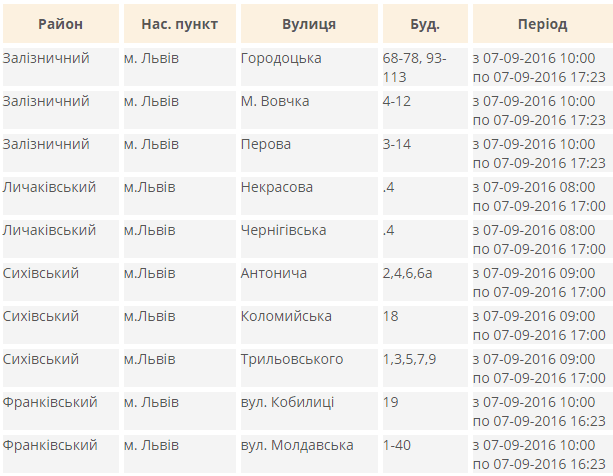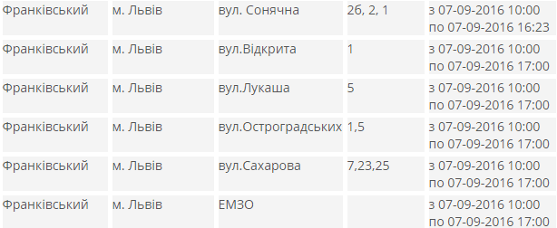Електропостачання частково припинять на таких вулицях: