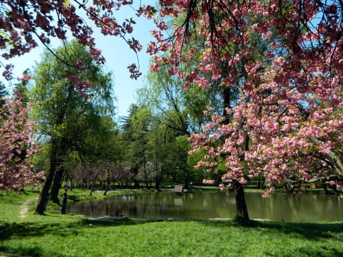 У центрі саду викопали декоративне озеро. Варто звернути увагу на його контур. Як і архітектурна композиція замку, озеро має символічне значення: його обриси відтворюють мапу тогочасної Австро-Угорської імперії.