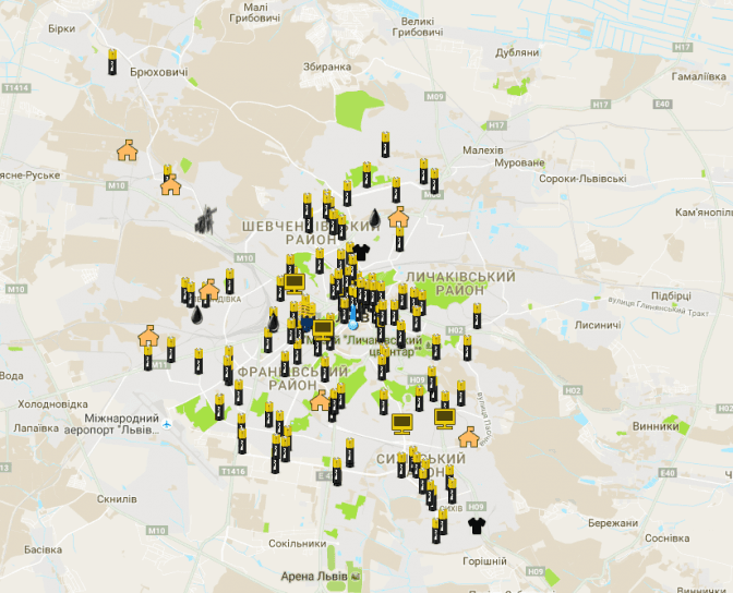 За допомогою карти можна дізнатись, куди здавати використані батарейки, електронні відходи, акумулятори, пластикові стаканчики, ртутьвмісні лампи, металобрухт, тощо. Мапу створило видання «Велика епоха».