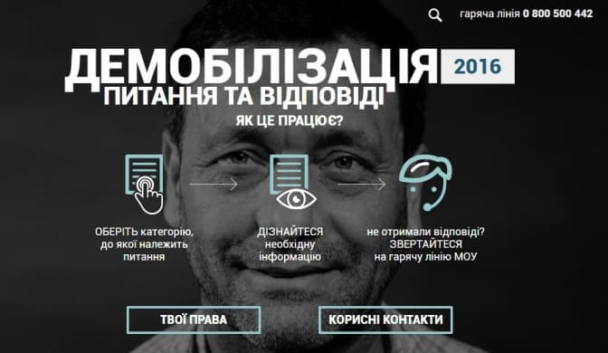 Міністерство соціальної політики спільно з Державною службою у справах ветеранів війни та учасників АТО та Міністерством оборони України запустили інтерактивний сайт для демобілізованих учасників АТО – Демобілізація: питання і відповіді.