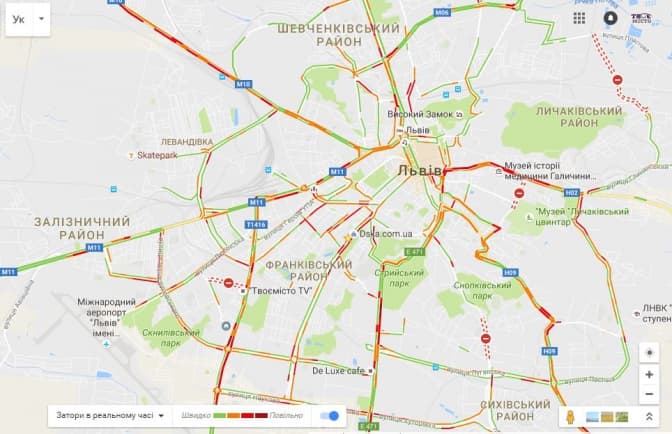 Згідно з даними Google Maps, станом на 08.45 год. затори у Львові є на вулицях: