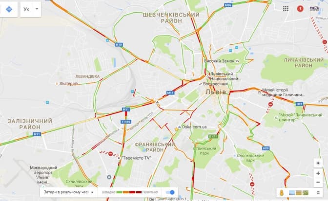 Згідно з даними Google Maps, станом на 08.25 год. затори у Львові є на вулицях: