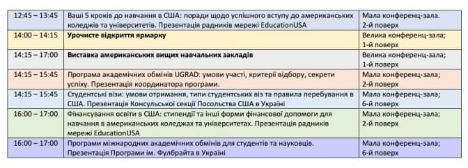 Під час заходу відбудеться презентація американських університетів, серед яких є ті, що знаходяться як безпосередньо в США: