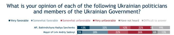Тим часом, у травні-червні показники були вищі: Андрія Садового визнали гідним довіри 5% українців і оцінили більш ніж позитивно – 28%, менш ніж позитивно - 22%, негативно - 26%. 6% опитуваних взагалі не чули про мера Львова, а 13% утримались.