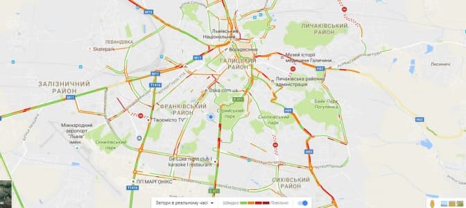 Згідно з даними Google Maps, станом на 08:20 затори у Львові є на вулицях: