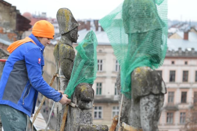 Згідно проведених досліджень було вирішено убезпечити фігури від можливого обвалу. Фігури накрили сітками та захисними оболонками, які зафіксували спеціальними ременями. В такому стані фігури не обваляться на перехожих. Наступним кроком, вже у 2017 році, буде розробка проекту, що стане основою для подальших заходів на цьому об’єкті.