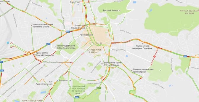 Згідно з даними Google Maps, станом на 08:20 затори у Львові є на вулицях: