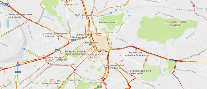 Згідно з даними Google Maps, станом на 8.30 год. 15-го листопада у Львові є затори на вулицях: