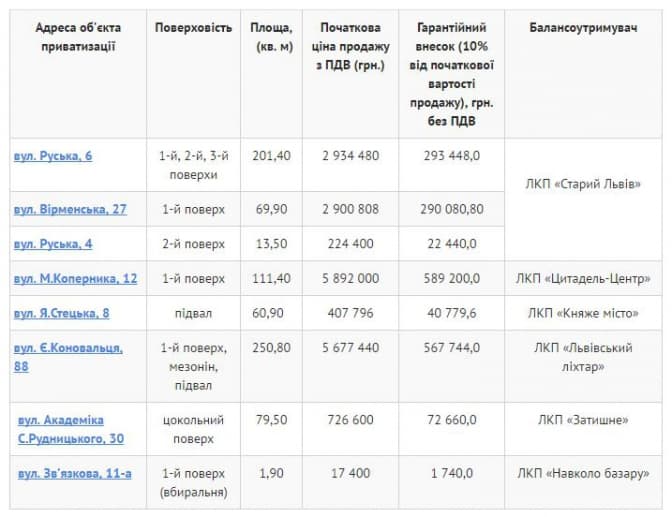 Ознайомитися з об’єктами можна за місцем їх розташування в робочі дні, отримати інформацію можна в балансоутримувача за вказаними телефонами та в управлінні комунальної власності ЛМР за телефоном: (032) 235 50 26 з 10.00 до 17.00 год.